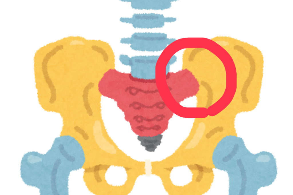あんまり難しく言うとわかりにくくなるので、簡単に言うと骨盤は3つの骨からできています。そしてどこが炎症を起こすかと言うと絵の赤丸の位置の関節です😊